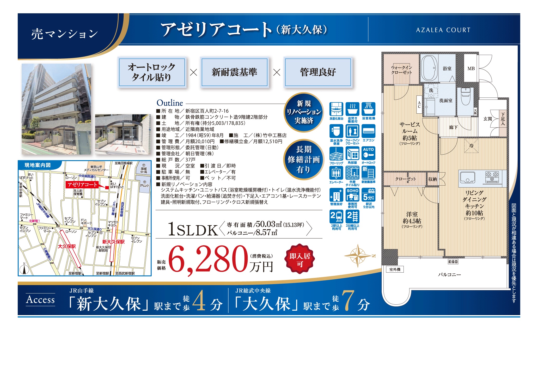 都内 新宿区百人町2丁目 価格 6280万円 間取り 1SLDK 最寄駅 山手線新大久保駅徒歩4分・中央線大久保駅徒歩7分 →この物件の詳細を見る 目黒区下目黒2丁目 価格 4980万円 間取り 1K 最寄駅 山手線目黒駅徒歩9分 →この物件の詳細を見る 都下・近県 さいたま市緑区大字中尾 価格 2280万円 間取り 3LDK 最寄駅 京浜東北線浦和駅バス11分不動谷停徒歩2分 →この物件の詳細を見る 横浜市金沢区六浦5丁目 価格 4180万円 間取り 4LDK+4WIC 最寄駅 京急逗子線六浦駅徒歩3分 →この物件の詳細を見る